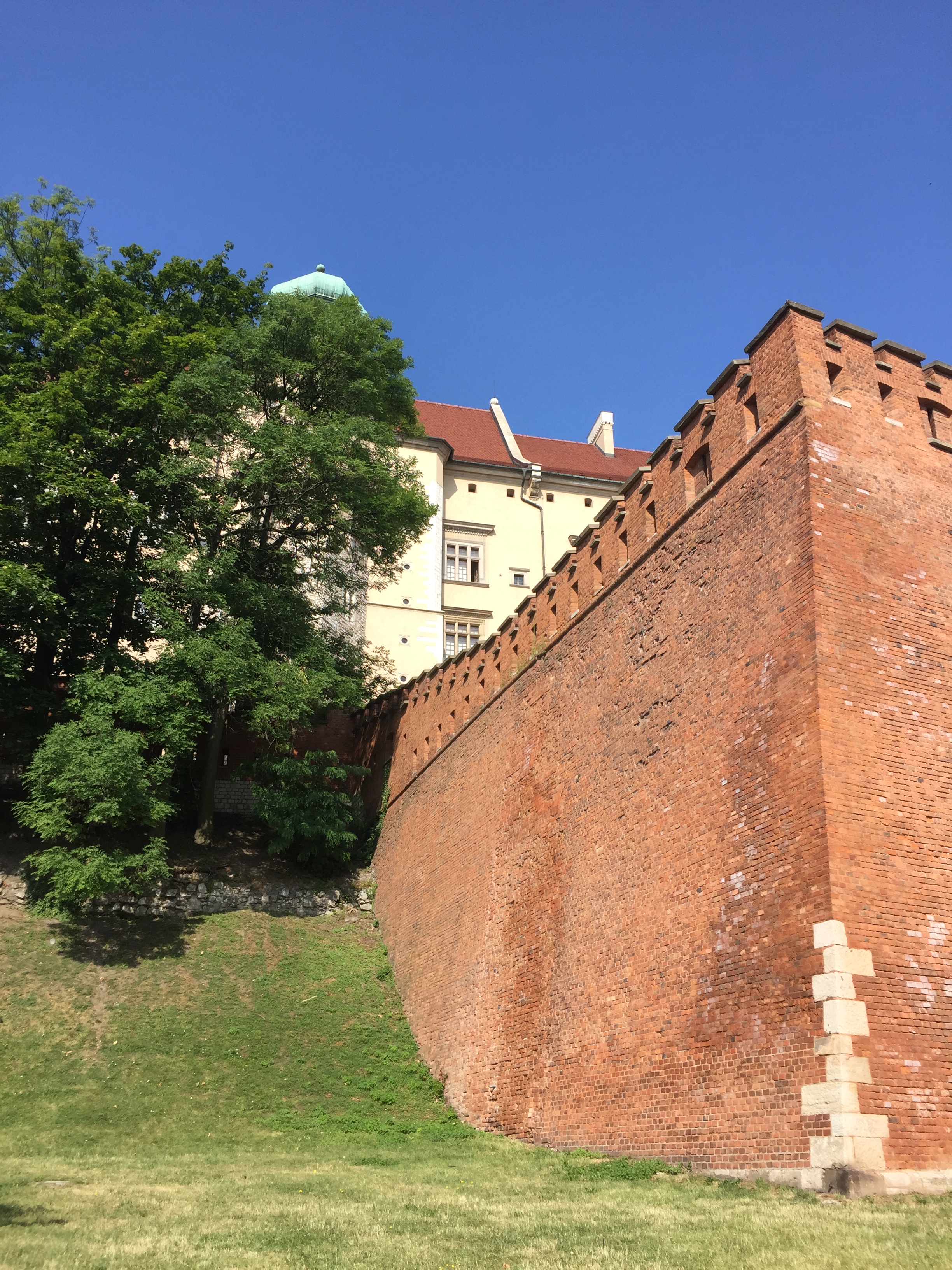 We started our morning with a walk through this park, from which we made our way in the direction of the Wawel: the spectacular castle on the hill, surrounded by its own walls, with its pastiche of architectural styles and its magnificent opulence.