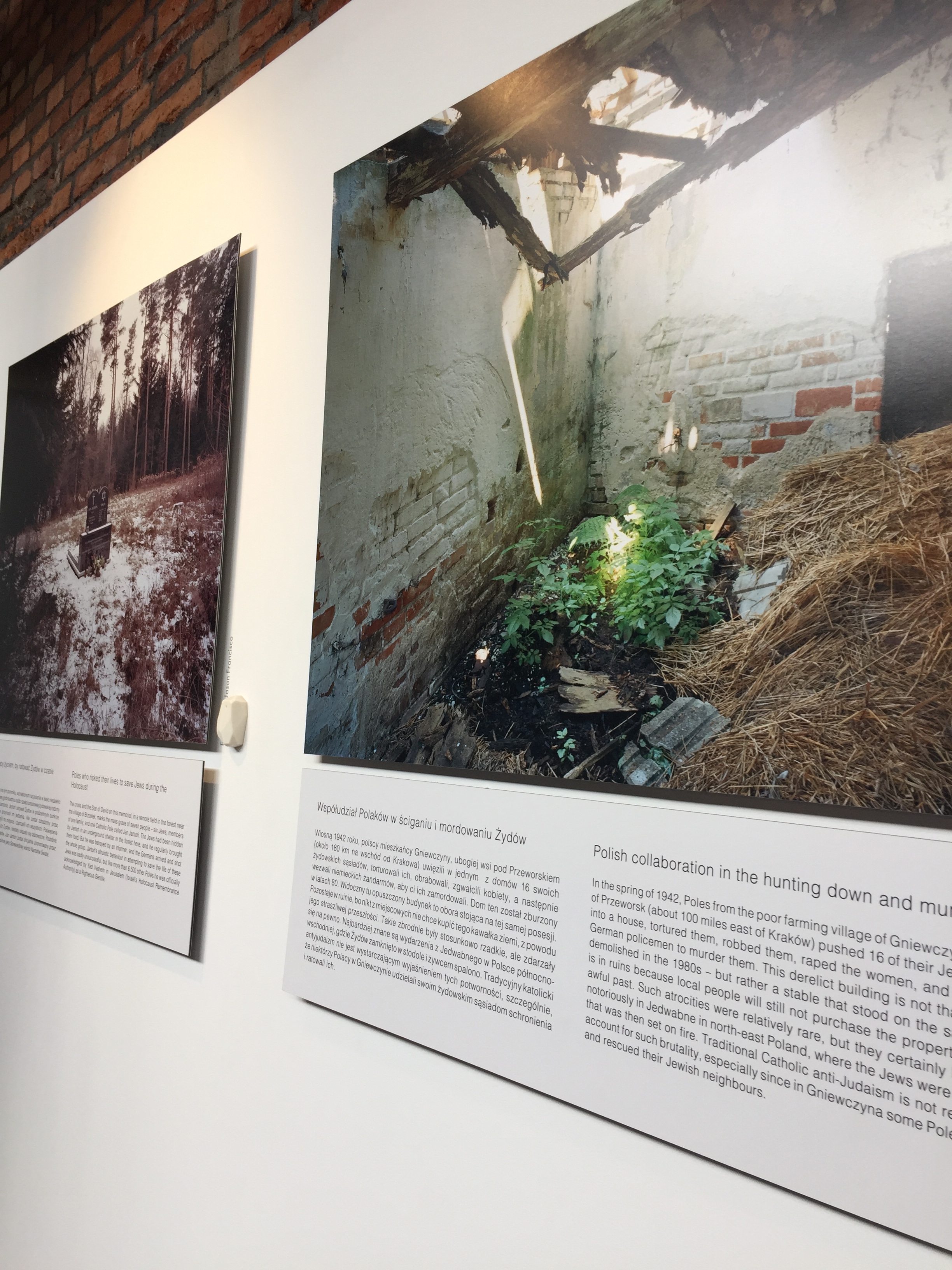 A “museum of ideas”, these photographs are not designed to provide information but to challenge and provoke discussion. As such, they focus on contradictions and on paradoxes: the juxtaposition, for example, of a joint grave where a Jew lies buried next to the Pole who was murdered for having sought to save his life, together the photograph of a barn in which Poles had robbed and raped Jews before handing them over to the Germans to be murdered.