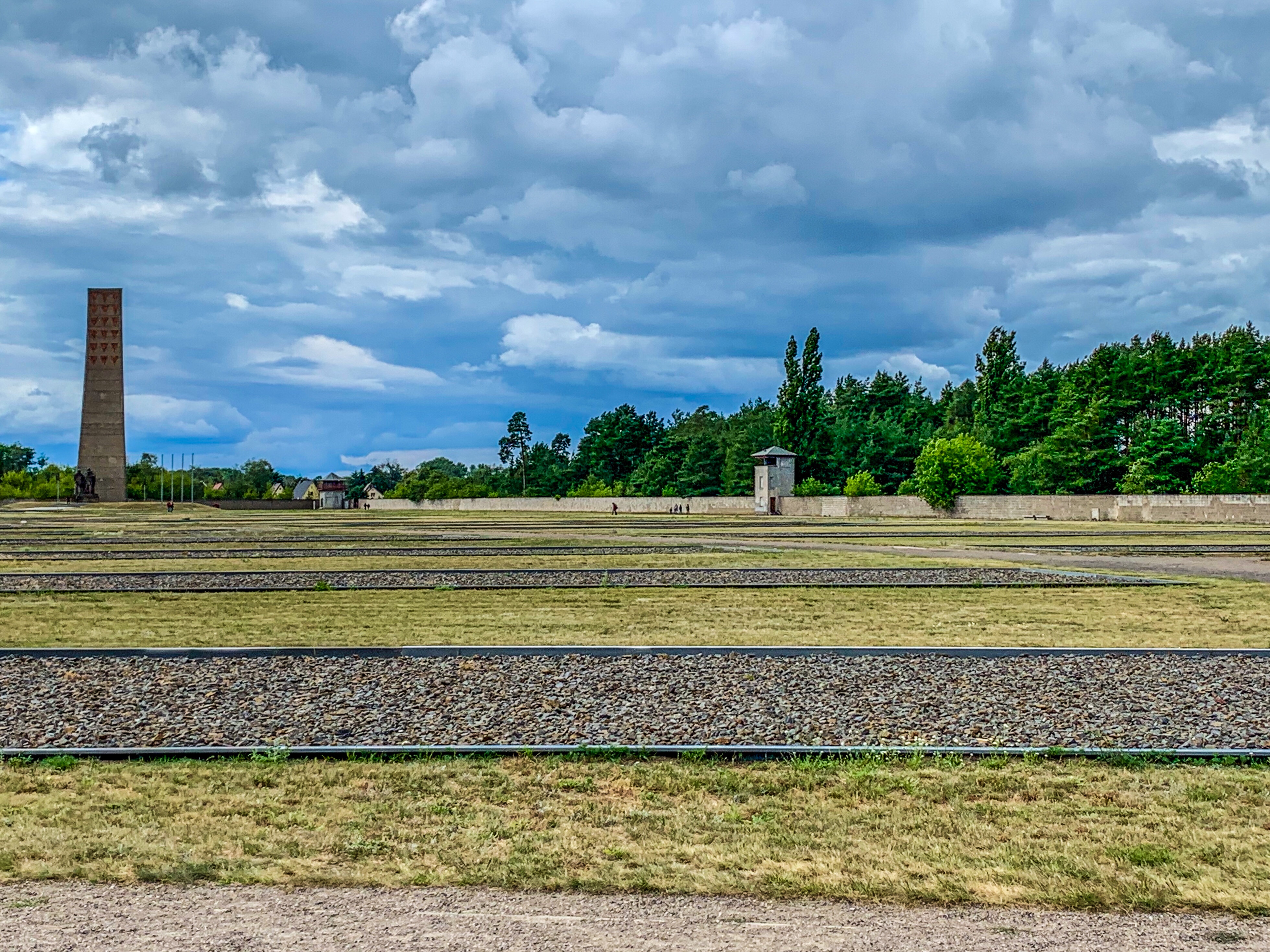 Designed like an amphitheater, fanning out from before the entrance, the camp was a 25min walk from the Oranienberg railway station and a convenient distance away from prying eyes in the city. Towers mounted near the entrance allowed guards a vantage point to see every corner of their sprawling camp, in which prisoners were systematically degraded and in which some 30,000 of them were murdered.
