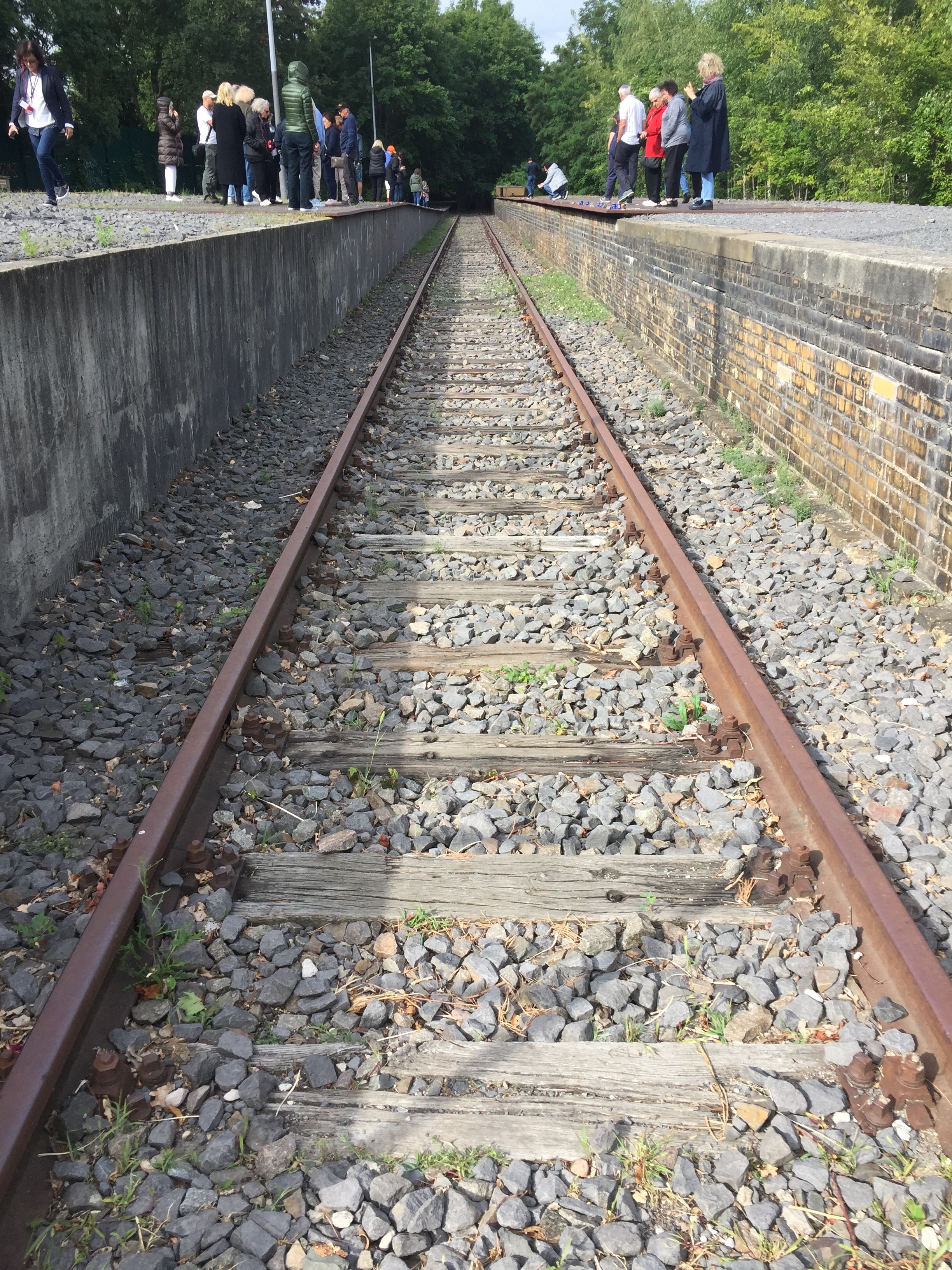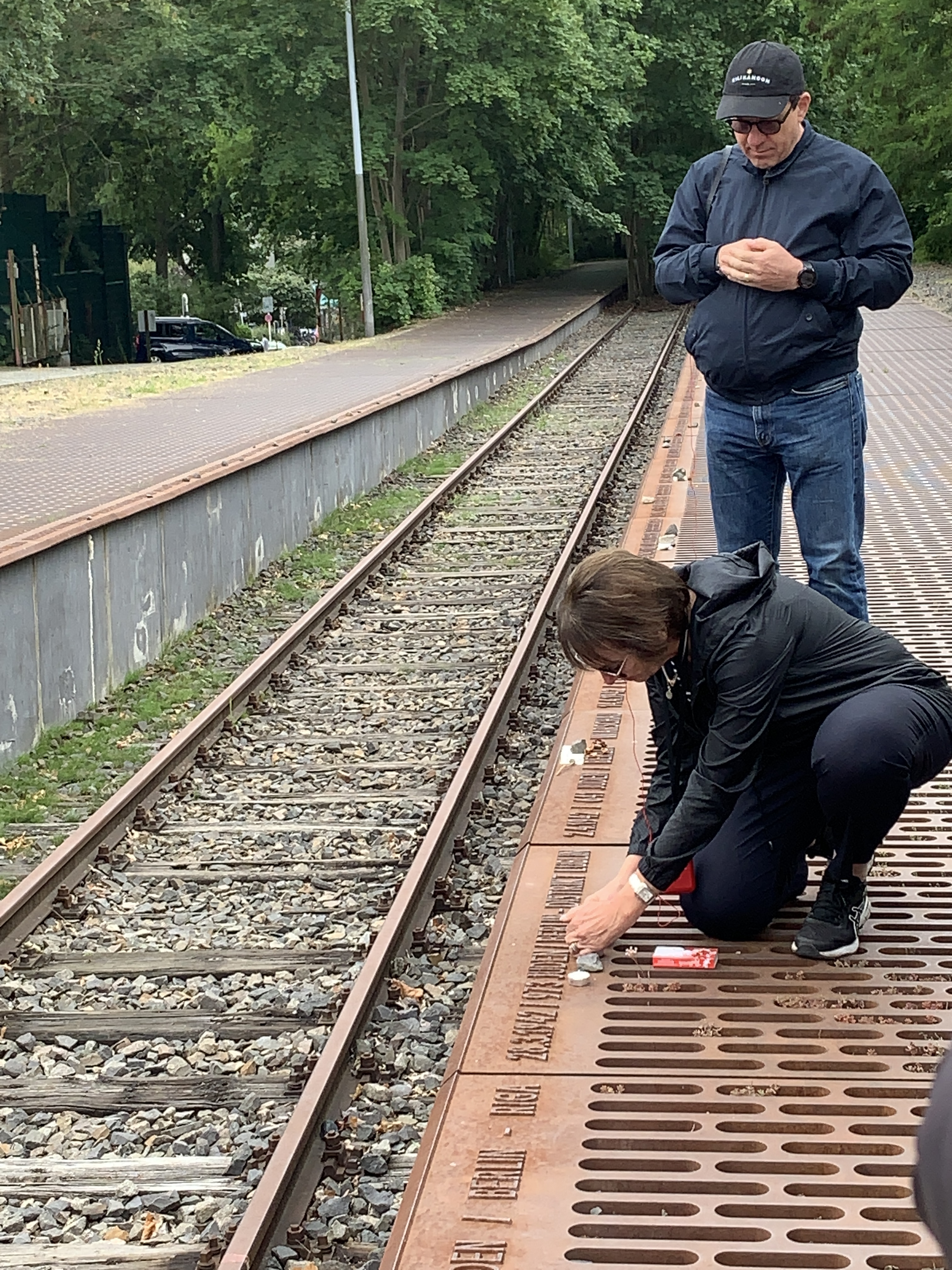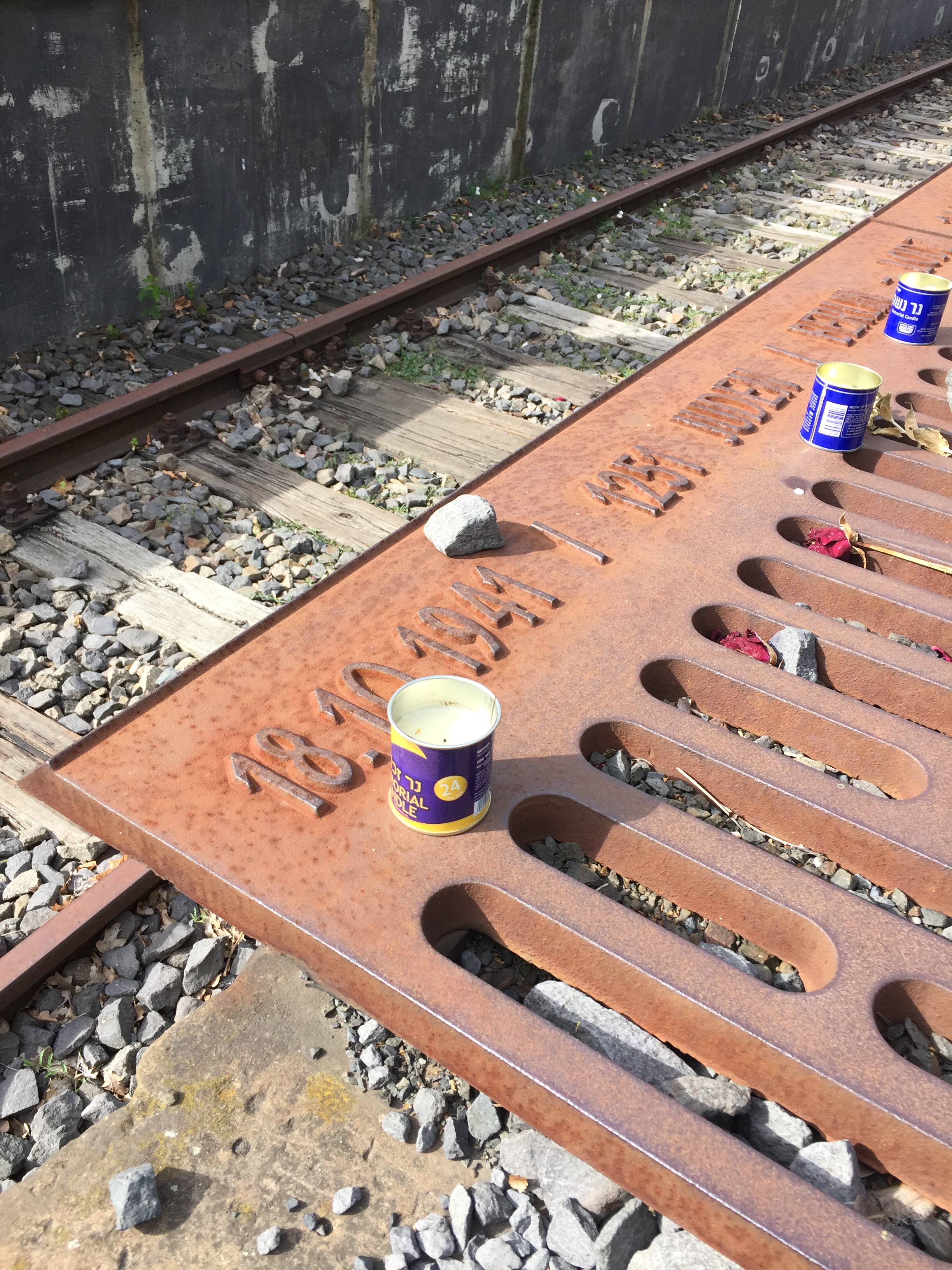At the track, we paused alongside stones and candles that had been placed by those who have come before us, and added our kaddish to the many that have been recited here, repeatedly, over the years. In the silence that followed, Agnes read a poem (“To Forget”) by Israeli poet and Holocaust survivor, Arye Palgi.